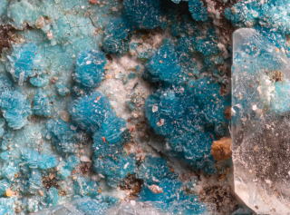 非常にきれいな青色の銅の含水塩基性硫酸塩で塩素を含み、化学式から推定すれば水にでも溶けそうな気がしてデリケートさを感じる。