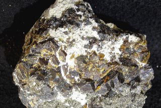 右画像は新しく訪問した際、持ち帰った同好者が成分を調べたら、そのほとんどが含Co-硫砒鉄鉱だとのこと。さて右画像はすぐそばで掻きとっていたS氏の交換恵与品だが、(拡大してみた)画像中の金属光沢の色合いから見て輝コバルト鉱(砒酸硫化物)としたが、スクテルド鉱(砒酸塩)もありかなと思う。なぜかこの大きな一個だけしか見られなかった。