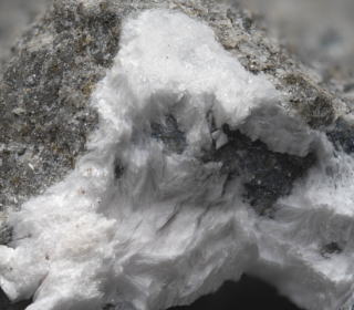 かなり前にこれも図鑑で紹介されたりして有名だったが、白木地域で採石場が稼行していた時代に出会った、大きな母岩の隙間から現れるあられ石の美しさには驚いたものだ。母岩の表面だけが黒くなったところにあられ石が乗るものがありそれはコントラストが良かった(下画像)。